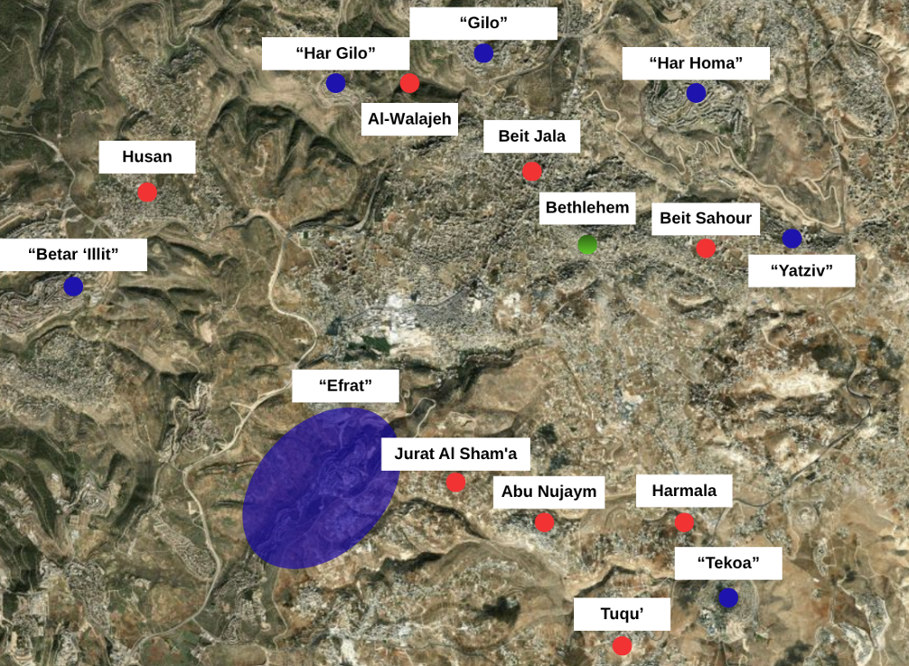 The eastern and southeastern areas of Bethlehem, including Abu Engeim, Juret Al-Shamma, Tuqu‘, and Harmala, are witnessing a severe escalation in settler attacks, which reflect an organized pattern aimed at creating and expanding settlements in the area, isolating the city from its natural geographical extension, within the broader context of creeping annexation and forcible displacement.